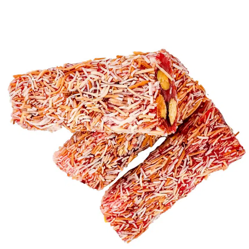 لوکوم فیتیل پسته ترکیه با طعم انار و کادایفمحصول وارداتیلوکوم فیتیل انار با روکش کادایف